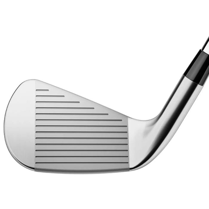 Consistent speed and spin: A new Variable Face Thickness (VFT) design in the 3- through 7-iron maintains speed and launch on off-centre strikes, while new, more aggressive grooves in T100’s mid- to short-irons improve performance from the rough and wet conditions by adding consistency in spin control and helping to mitigate fliers.